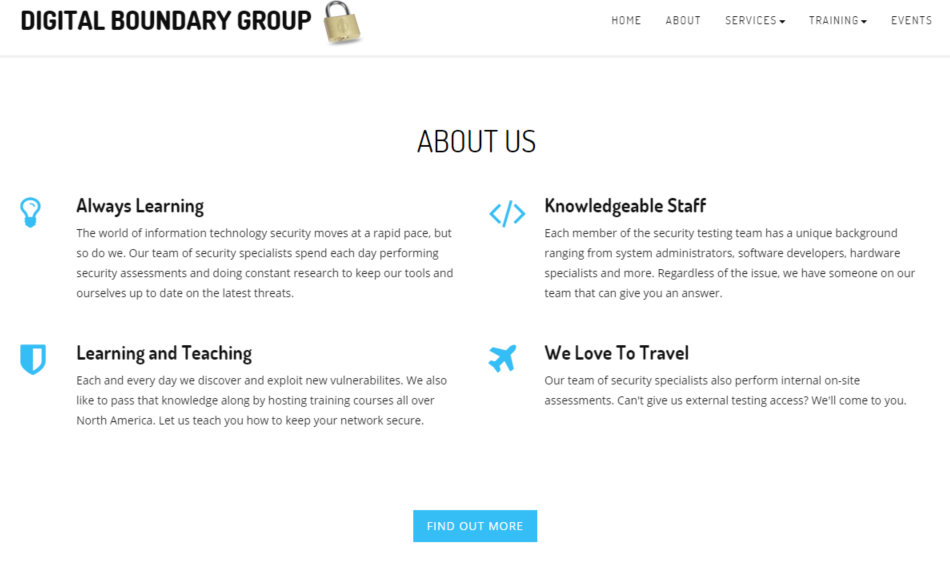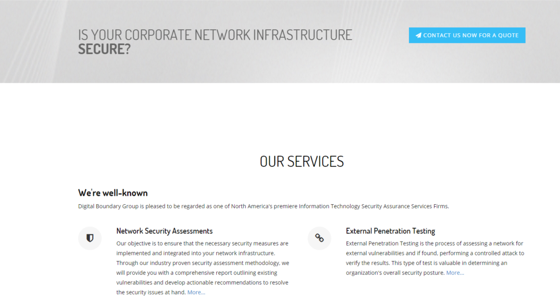 Digital Boundary Group is the security company that I am currently employed at. I have designed their website and continually update it. Check it out!